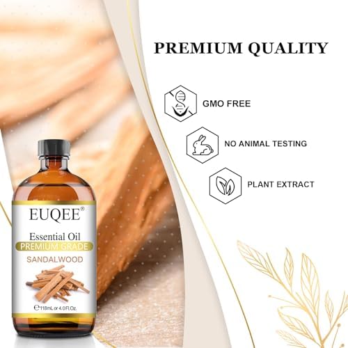 EUQEE Sandalwood Essential Oil for Diffusers, Soap & Candle Making, 4 Oz Glass Dropper BottleEUQEE Sandalwood Essential Oil for Diffusers, Soap & Candle Making, 4 Oz Glass Dropper Bottle