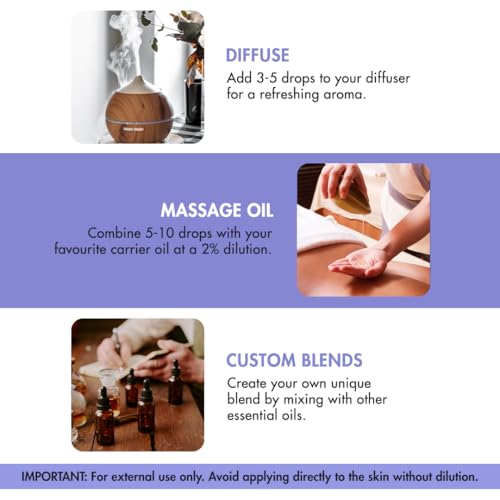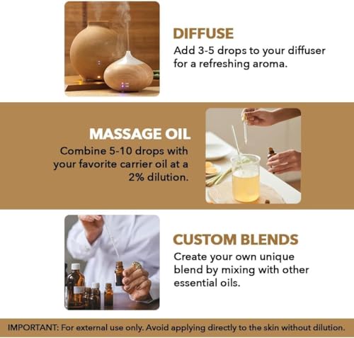 Packaged in an amber glass bottle, our oils protect against harmful UV rays while maintaining the integrity of the essential oil. The built-in dropper ensures precise application, allowing you to control the amount and minimizing waste. Whether you’re using it for personal wellness or professional applications, our bottles offer both aesthetics and functionality.