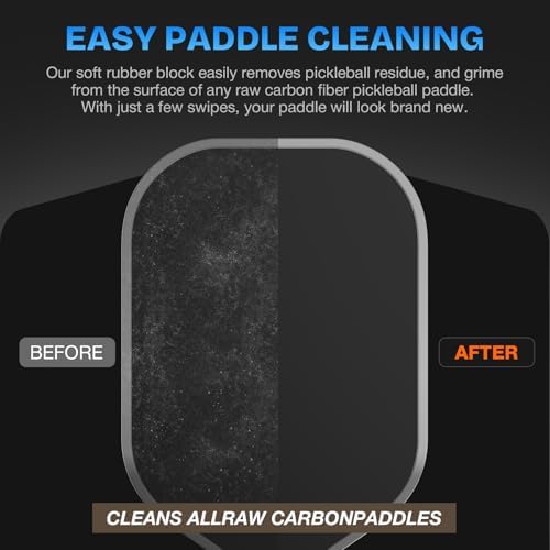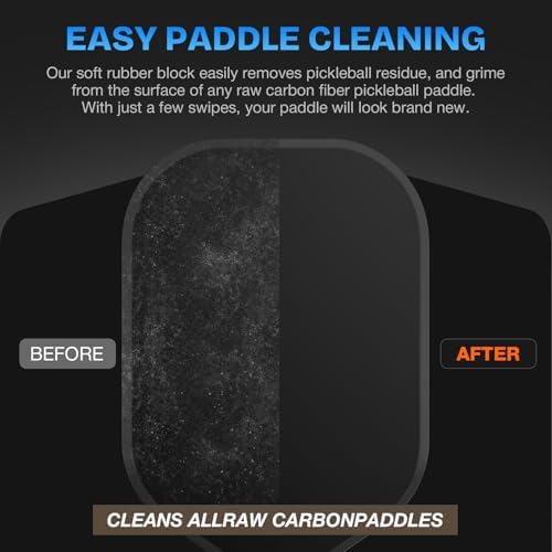 EASY PADDLE CLEANING: Our soft rubber block easily removes pickleball residue and grime from any raw carbon fiber pickleball paddle. Just a few swipes will have your paddle looking brand new.