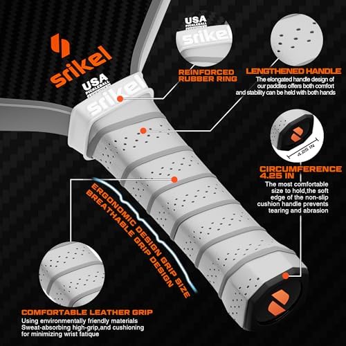 Our pickleball paddles feature a comfortable grip, measuring 4.25″ in circumference and 5.2″ in length. The handle is sweat-absorbing and impact-resistant, offering a secure hold during extended matches and minimizing fatigue.
