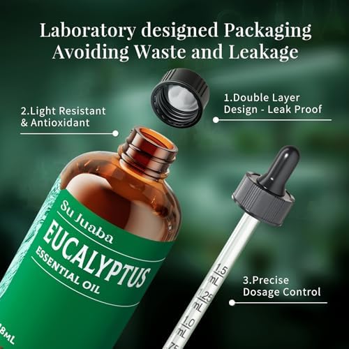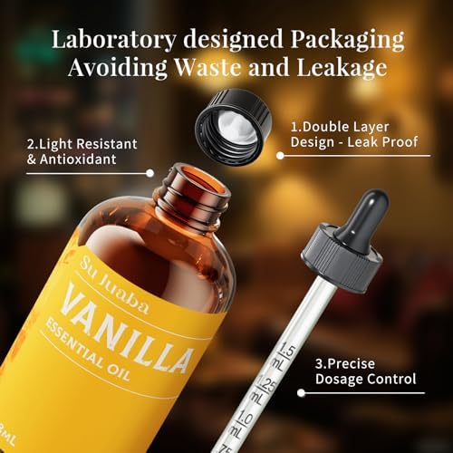 SU JUABA Cinnamon Essential Oil comes in amber glass bottles with high-quality glass droppers that protect the essential oils from sunlight and maintain their aroma. The included glass dropper ensures accurate application, preventing waste and leakage.